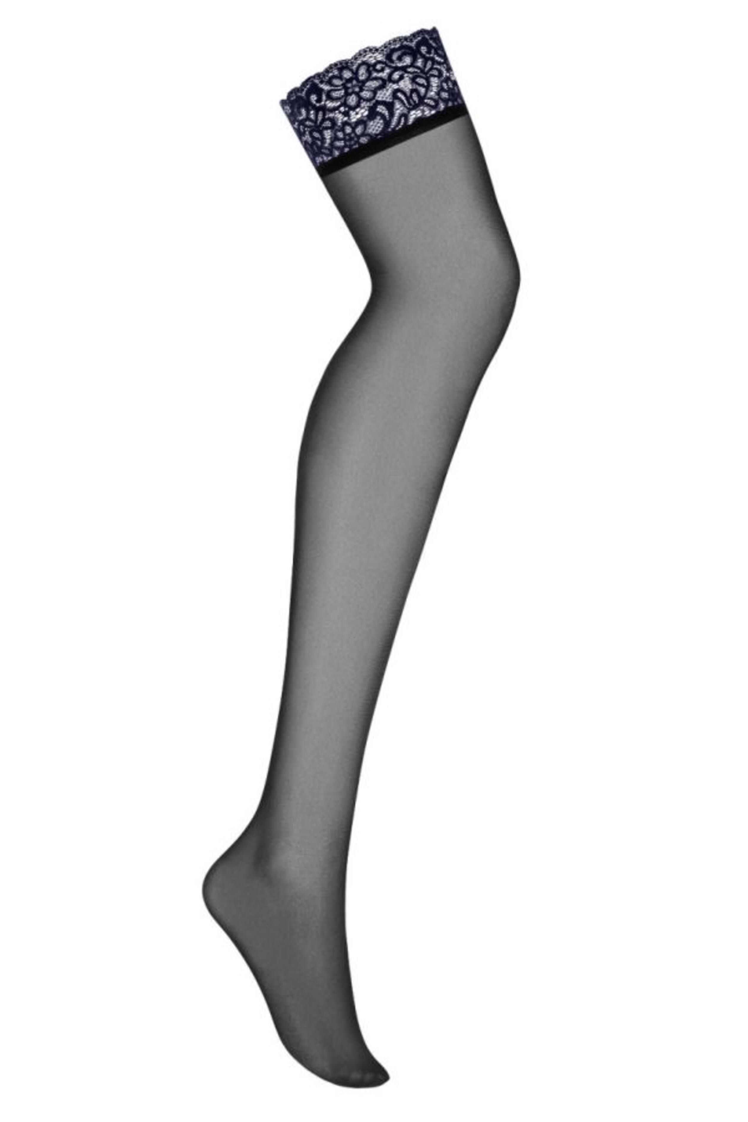 Gyönyörű és szexi combfix, sötétkék csipke szegéllyel. A Laluna combharisnya csipke szegélye nem tartalmaz szilikont. Az érzéki fekete combfix a Drimera kollekcióban megtalálható sötétkék harisnyatartós fehérnemű szett kiegészítőjeként készült, a combharisnya elasztikus csipke szegélye megegyezik a fehérnemű szett csipke díszítésével, de bármely fekete harisnyatartó és harisnyatartós fehérnemű tökéletes kiegészítője lehet. A szexi szilikon nélküli combfix két méretben, S/M(1/2) és L/XL(3/4) méretezéssel kerül forgalomba.